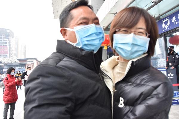 在进站口,院党委副书记、院长周胜,纪委书记赵军,副院长刘振国、杜建军为她送行:溢波,要不辱使命,圆满完成救治工作任务,同时做好自身防护,汉医人和你在一起!