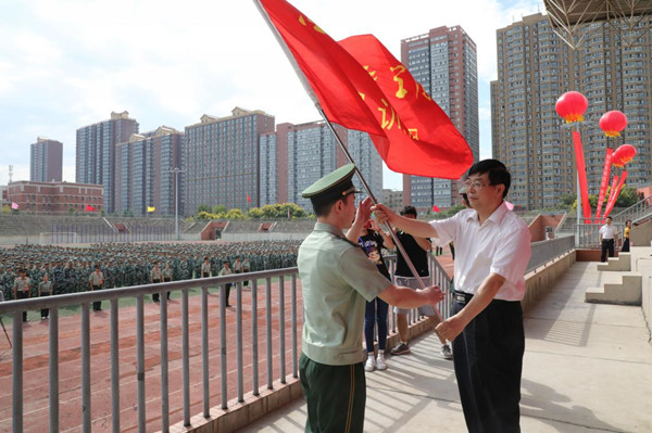 最后,校党委书记范兵向军训团参谋长曹宇中尉授旗,这标志着我校2018级全体新生正式开始了为期12天的军训。(党委宣传部 文/叶晋良 图/叶晋良 张艺嘉)