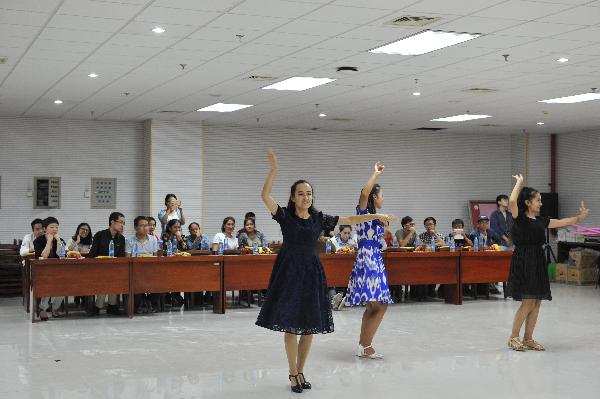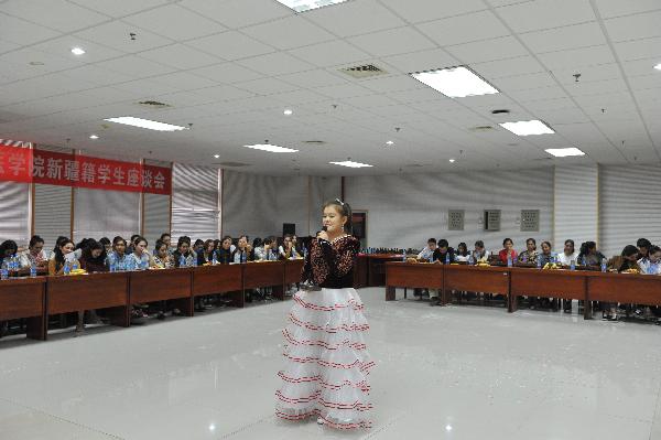 高年级学生代表迪力娜‧孜牙努尔和塔基古丽分别从学习、生活、文化交流、宿舍关系等方面阐述自己大学生活的心路历程,为新生们提供了很多有益的建议和解决问题的方法,并表示要胸怀感恩,好好学习,不断提高自己的综合素质和能力,将来更好地服务于家乡建设。