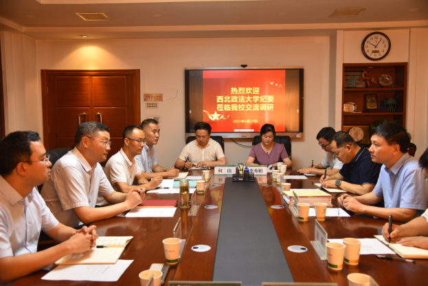 6月27日,西北政法大学党委副书记、纪委书记、监察专员肖道远带领该校纪委办一行7人来我校调研交流。校党委副书记、纪委书记、监察专员沙德忠出席并主持调研座谈会。