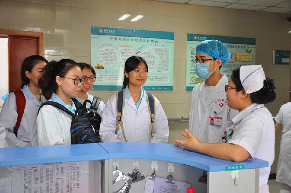 学生在基层县医院与校友亲切交流