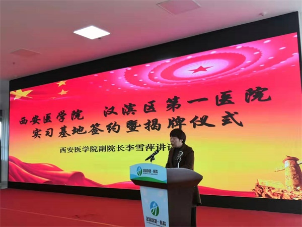 12月26日下午,我校与安康市汉滨区第一医院签约暨西安医学院实习医院基地揭牌仪式成功举行,副院长李雪萍带领实践教学处参加了揭牌仪式,仪式由汉滨区人民政府副区长繆红艳主持。