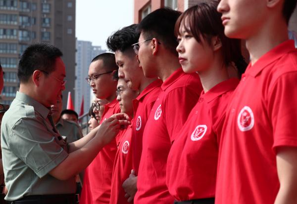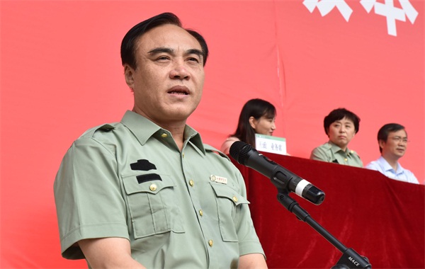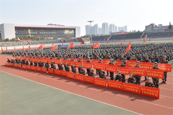 武警陕西总队西安支队副政委傅建麟上校在讲话中希望同学们在军训中能够战胜身体疲劳、刻苦训练,不断加强国防意识和纪律意识,培养积极进取、奋发向上的可贵品质。