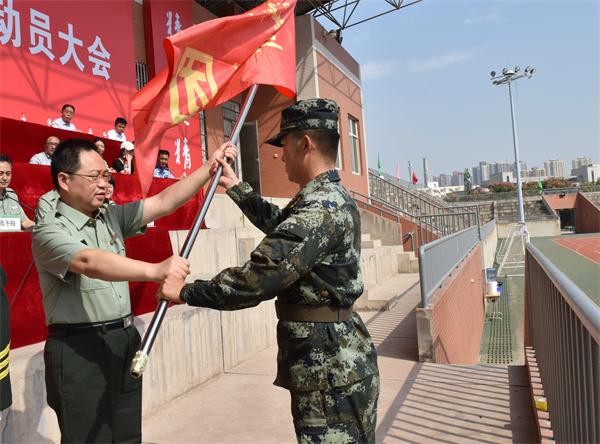 党委书记刘岭向军训团授旗,宣布我校2020级新生军训开始!(党委宣传部 文/苏静 图/马瑞馥 审核/李庆民)