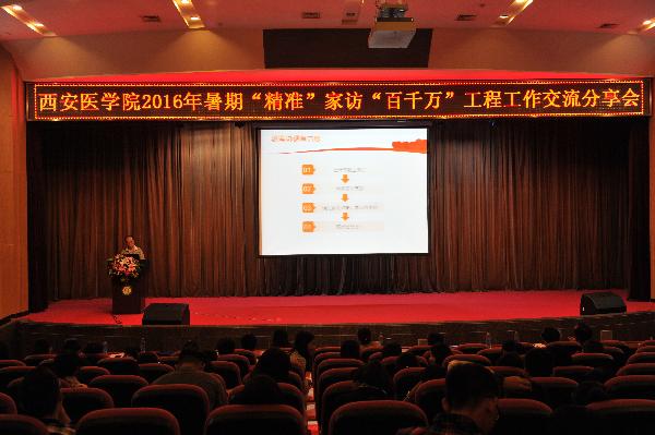 2016年6月16日,陕西省高教工委组织部分高校领导赴新疆进行少数民族学生教育管理模式调研活动,我校党委副书记熊冬梅带领学工部部长靳红樱、教务处副处长娄鸣一行三人赴喀什地区进行家访。此次家访工作取得良好效果,开创了我校学生管理新模式。2016年7月,学工部制定《西安医学院“精准”家访“百千万”工程实施方案》,并对2016年暑期“精准”家访工作进行了安排部署。各院(系)按照学校要求,成立领导小组、制定工作计划。7月-8月,8个院(系)的32名学生工作者分赴宝鸡、咸阳、商洛、榆林、安康、西安地区的10余个区县和新疆地区的近60个学生家庭进行家访,效果良好。