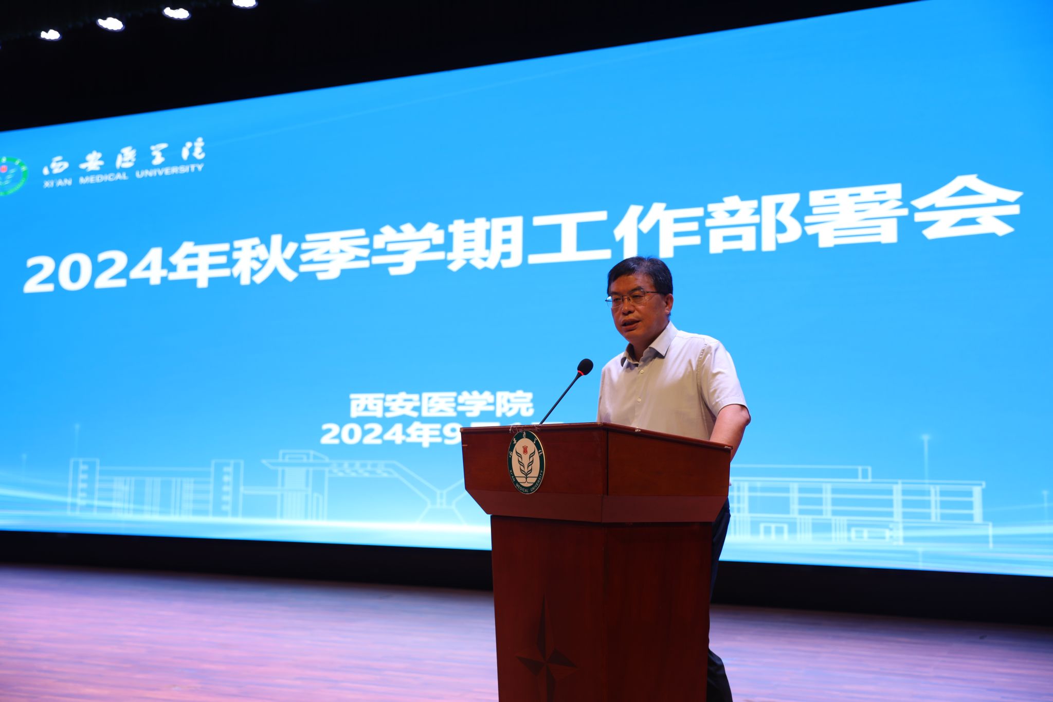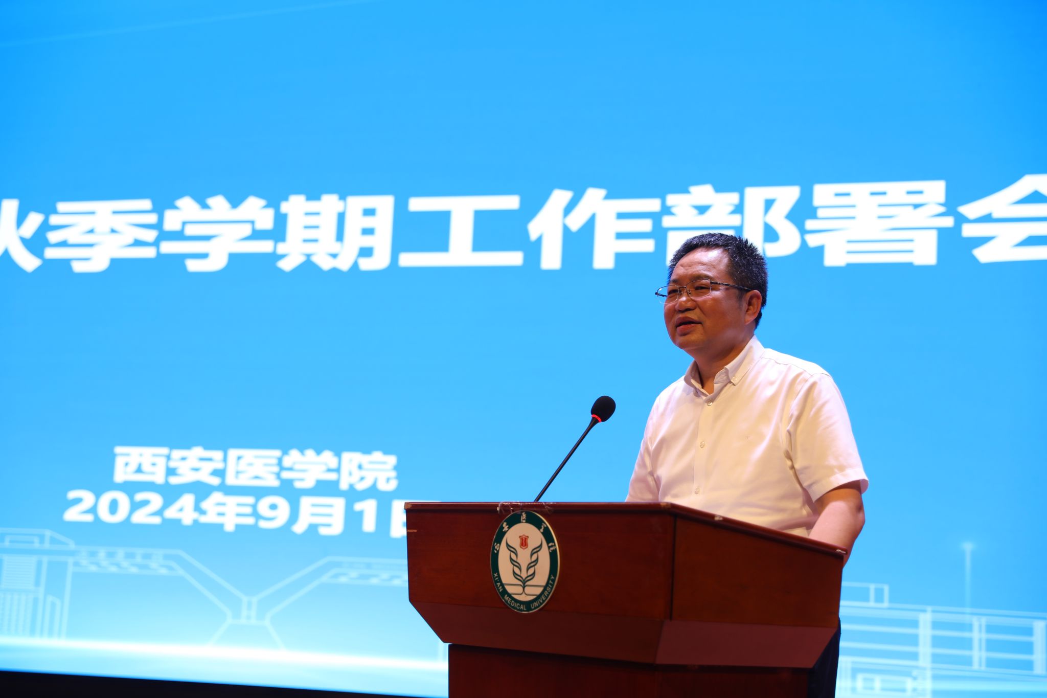 巩守平围绕党建工作、教育教学和人才培养、科学研究与对外合作、师资队伍建设和学生管理等方面对2024年学校重点工作进展及成效作了总结回顾,并就秋季学期重点工作进行安排部署。他指出,要切实抓好校园安全稳定工作。夯实校园安全工作基础,及时防范化解意识形态领域风险隐患,做好疾病防治工作。要着力提升教育教学水平。做好教育部本科教育教学审核评估的准备工作,健全教学质量保障体系,创新和完善督导工作机制。要落实高质量发展核心任务。全面推进学校重点工作,加速科研成果转化和推广,加强师资队伍建设。要构建完善服务保障体系。加强基础设施建设,做好下半年预算调整,持续推进智慧校园示范校建设。要统筹提升医疗服务水平。开展医药领域痛点难点集中整治,协调直属附属医院均衡发展,不断提升我校附属医院的影响力。