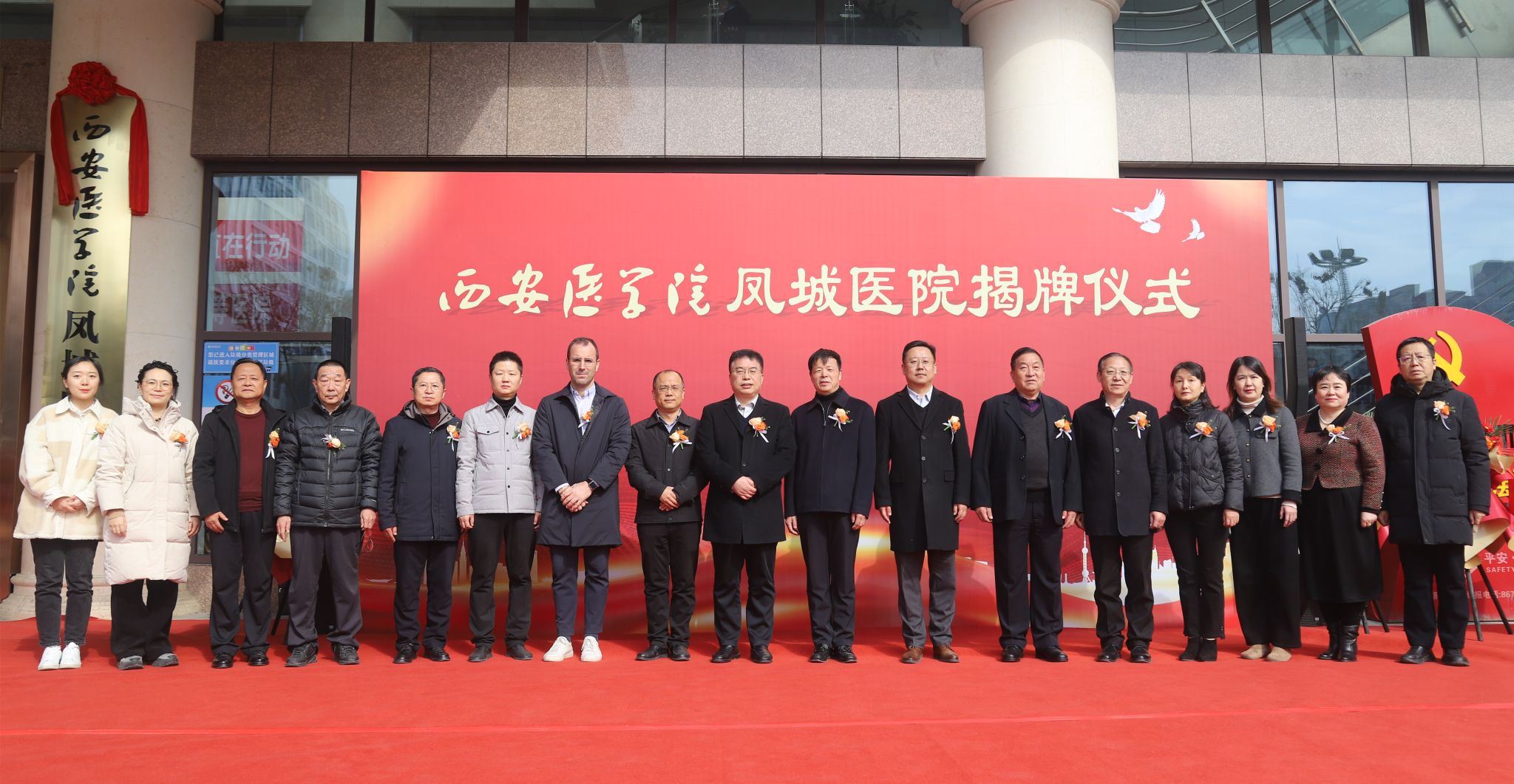2月13日,我校与西安凤城医院共建实习基地揭牌仪式在医院广场举行。党委副书记、校长巩守平出席活动并致辞。未央区卫健局局长张峰、英国剑桥大学Gonçalo教授,西安凤城医院院长王保山及院领导班子、职能部门负责人、临床医技科室主任、护士长和部分员工代表等百余人出席活动。