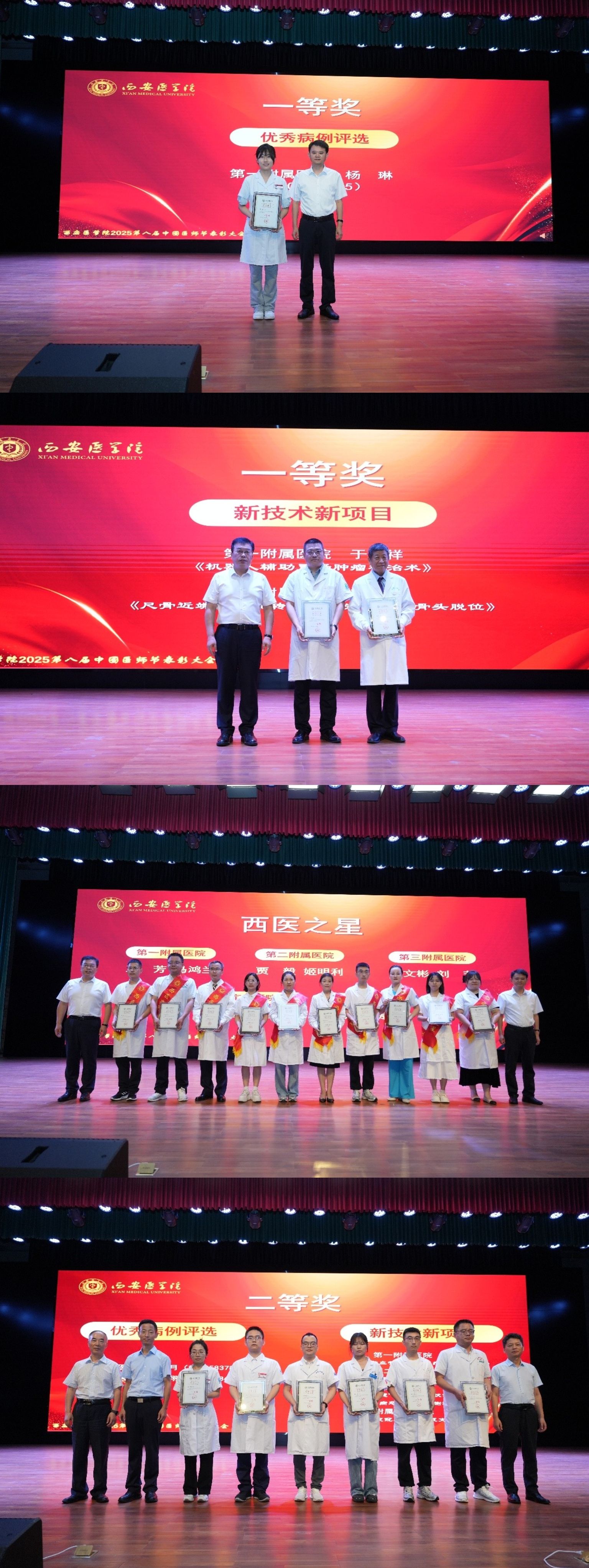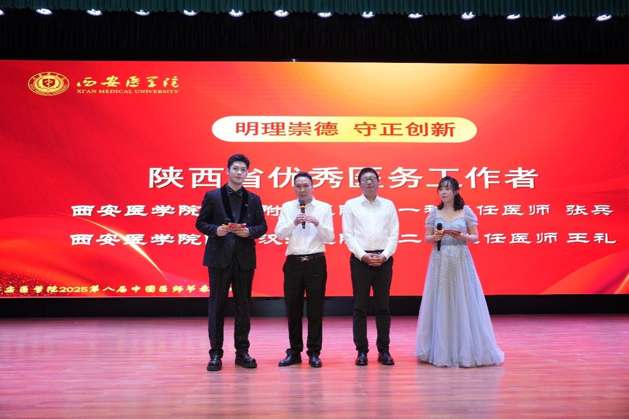随后,杨卓虎宣读了《西安医学院关于表彰2025年中国医师节获奖者及陕西省优秀医务工作者与团队的通报》,与会领导为获得荣誉的集体和个人颁奖。