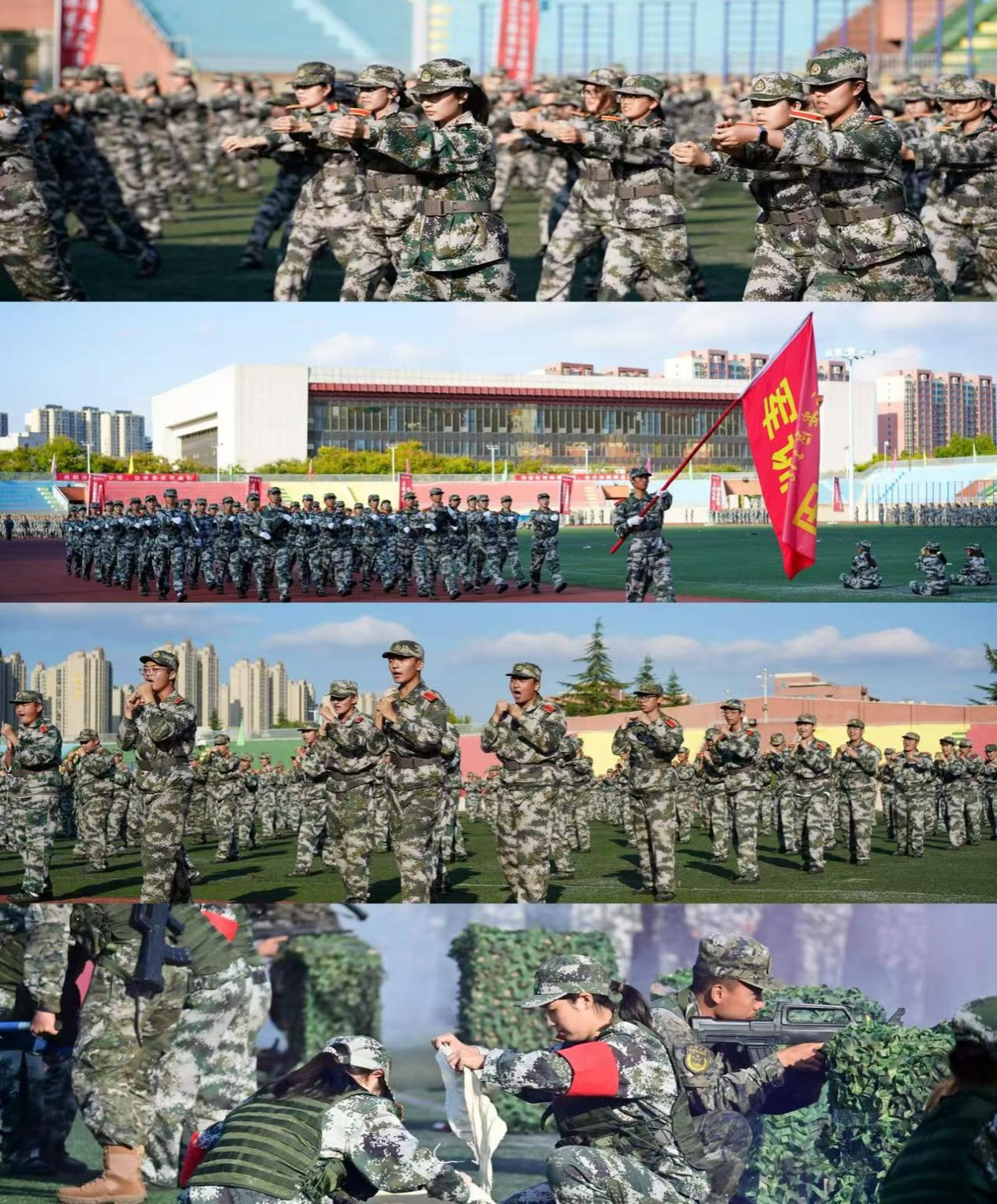 分列式上,各方队整齐划一的队列,响彻云天的口号,铿锵有力的步伐,坚定自信的神态,展现了西医学子昂扬向上的青春风采和精神风貌。匕首操、擒敌拳、战地救护等汇报表演精彩纷呈,彰显出西医学子的拼搏奋斗精神。