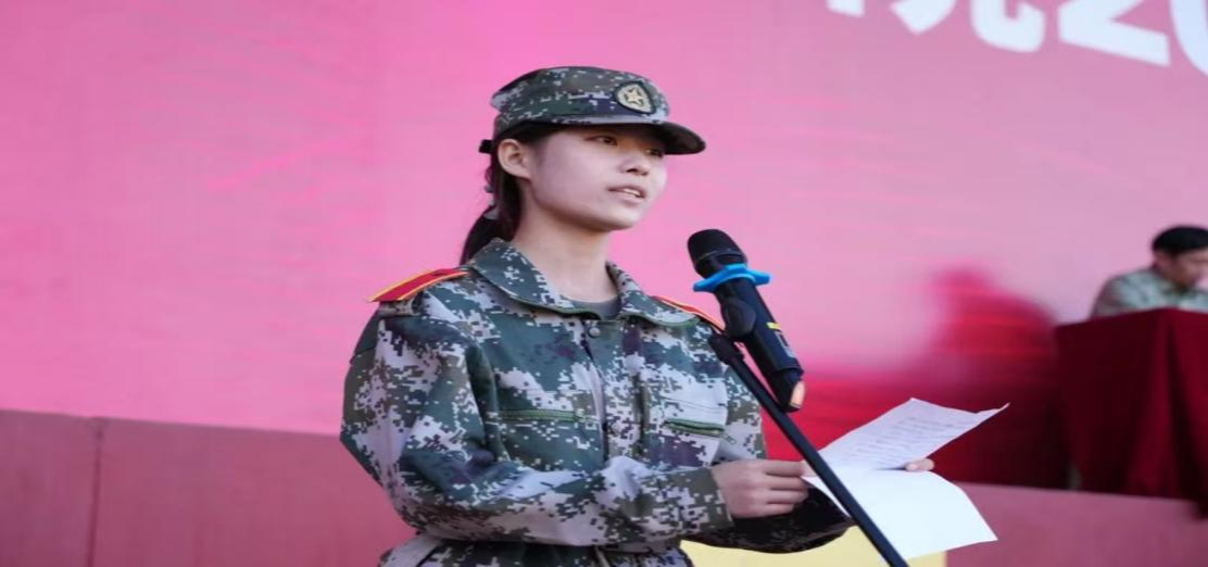全科医学院全科卓越2561班苏蕾代表全体参训学员发言。她回顾了为期两周的军训生活和收获体会,表示将以军训为起点,刻苦钻研,精益求精,努力成为一名有温度、有本领、有担当的卓越医学人才。