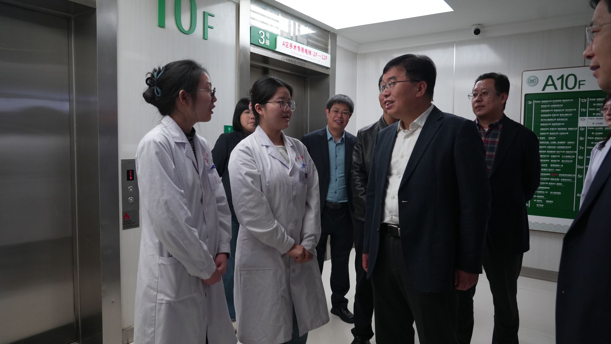 揭牌仪式后,巩守平一行实地查看了产科临床小讲课,现场与我校实习学生交流,参观了医院重点临床科室,手术麻醉科、医学影像中心,医学检验中心、见习学生授课教室等教学场所。