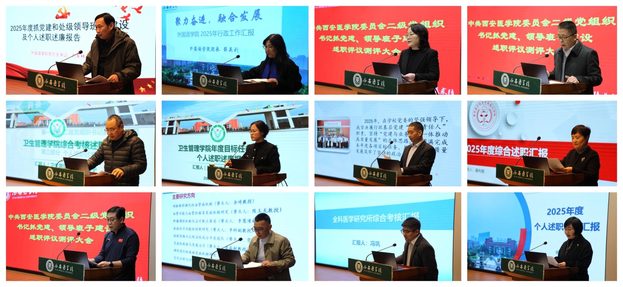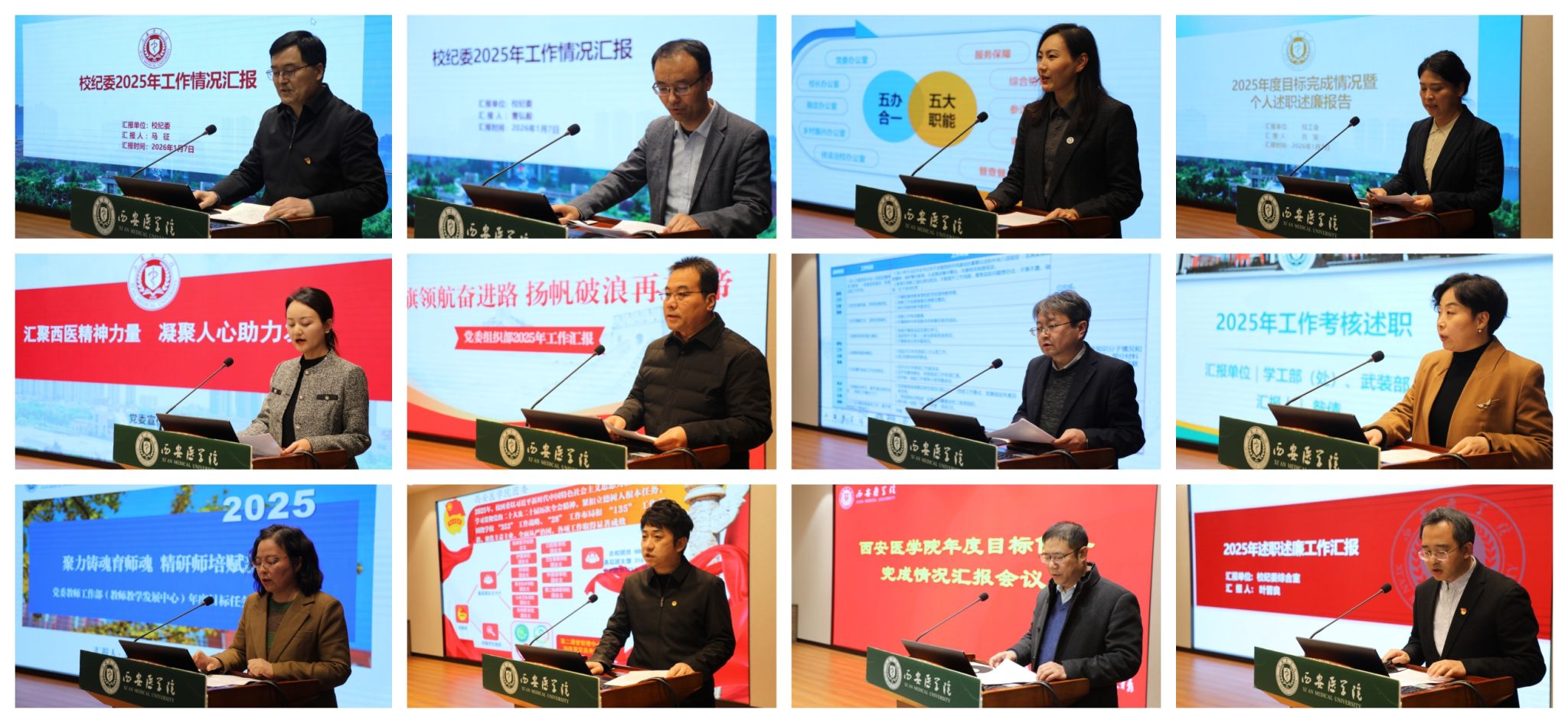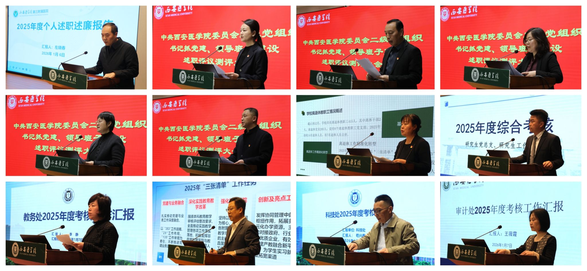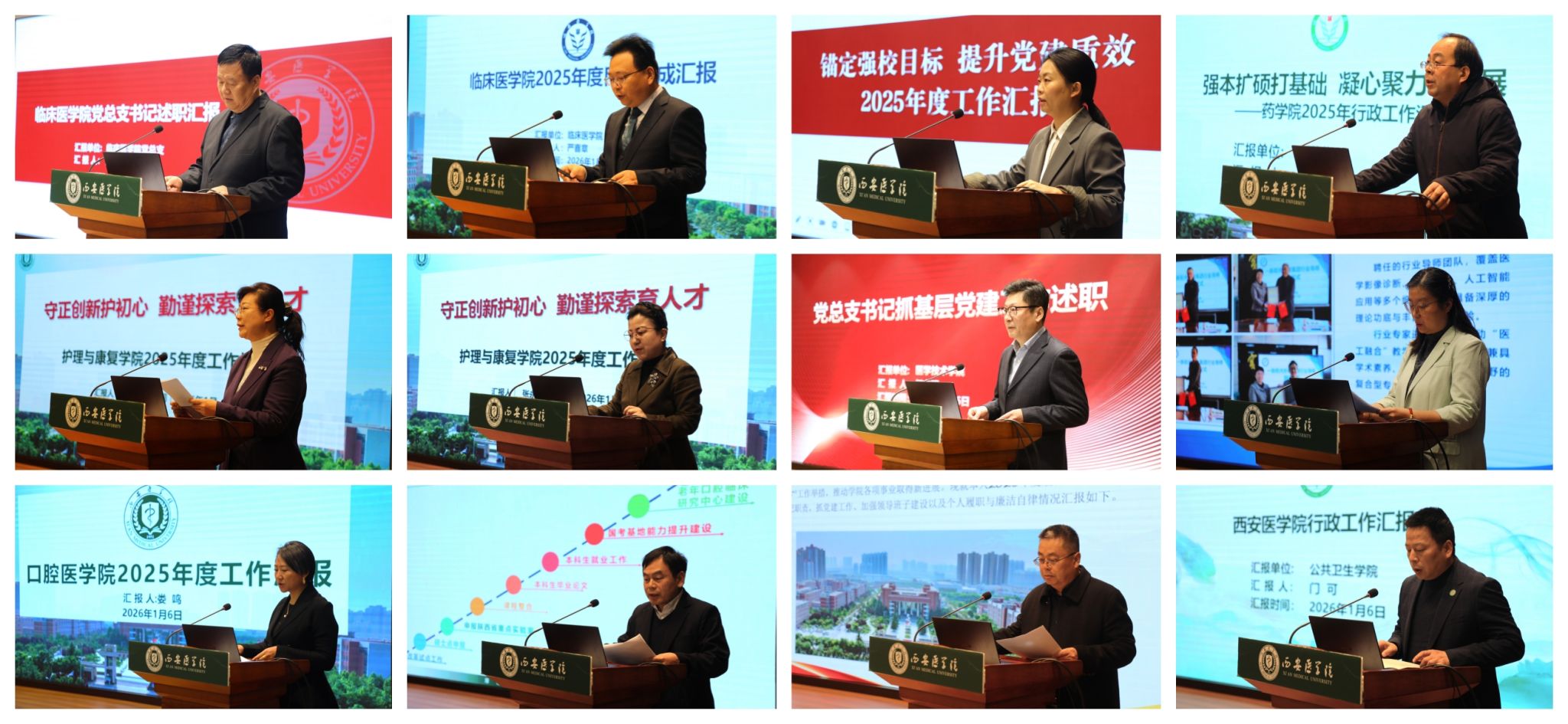 余立平全面肯定了学校2025年各项工作取得的成绩,指出此次述职全面展现了“西医人”面对挑战团结奋进、昂扬向上的精神风貌,为学校迈向更高发展阶段奠定了坚实基础。2026年,全校要坚持以问题整改促发展,以攻坚姿态着力解决中央、省委巡视反馈、上级审计指出、教育教学审核评估发现、校内巡察反映、师生关切突出等五类重点问题,以扎实的整改成效推动学校发展再上新台阶。为此,全年工作要牢牢把握“六个突出”,向改革要动力,用清单抓落实:突出落实省委“三个年”暨“八场硬仗”要求,主动融入全省工作大局;突出“升大申博”目标牵引,全力推进年度相关指标达成;突出学校各级各类平台、认证、协议的有效赋能,更好支撑学校高质量发展;突出问题整改,把巡视、巡察、审计和教育教学审核评估发现的问题整改和谋划发展工作紧密结合;突出人、财、物和信息化等资源盘清盘活、规范管理,提质扩容、集约使用,最大限度释放边际效益;突出全面从严治党、依法治校,确保学校发展行稳致远。