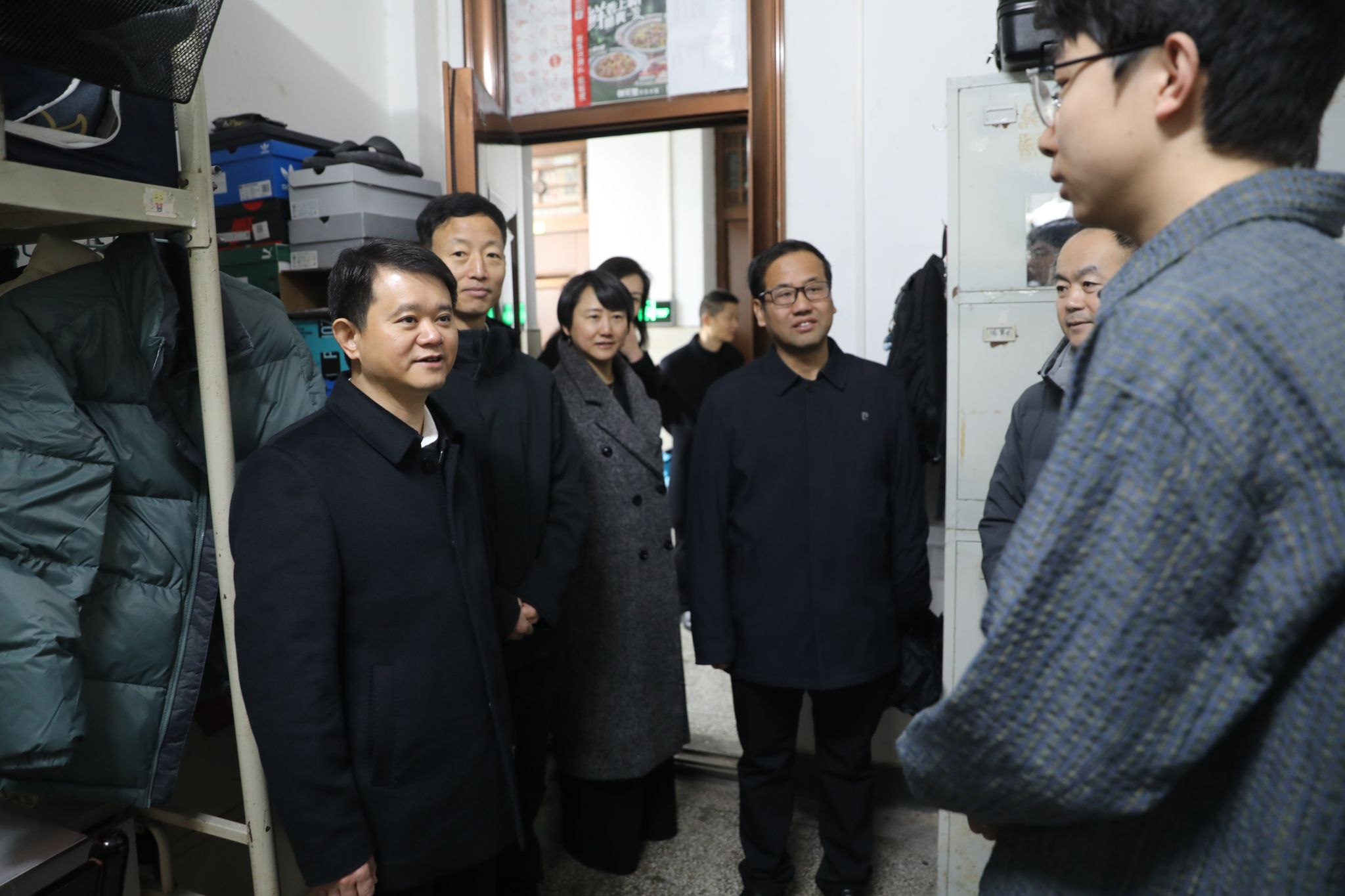 从行政部门到教学单位,从学生餐厅到公寓楼,余立平一行边走边看、边听边问,详细了解各单位寒假期间及开学准备工作进展,实地察看校园安全管理、教学设施运行、后勤服务保障、学生便利服务等情况。每到一处,校领导都与师生员工详细交流,认真倾听诉求,现场回应关切,氛围温馨融洽,展现出全校上下同心同向、聚力前行的良好开局。