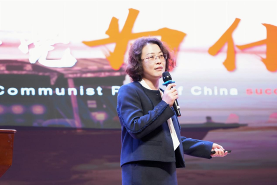 冯晓霞以《中国共产党的百年奋斗史》为题,从中国共产党“救国”“兴国”“富国”“强国”四个历史阶段,生动详实地介绍了党在各个历史阶段经历的深层次变革和取得的伟大成就,深刻解读了中国共产党为什么能、马克思主义为什么行、中国特色社会主义为什么好的历史逻辑、理论逻辑和实践逻辑。引导新时代青年要坚定不移听党话、跟党走,在强国建设、民族复兴伟业中展现青春作为、贡献青春力量。
